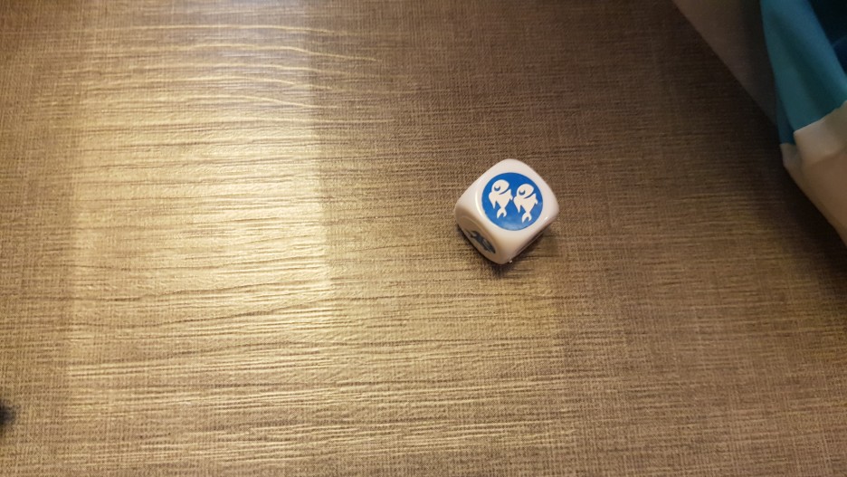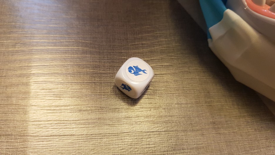 우선 주사위를 굴려 1차 복불복을 시작합니다. 5면의 물고기 1개짜리와 단 하나의 2개짜리 물고기...