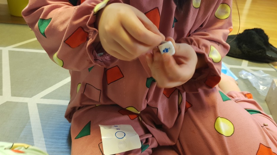 상어 눈과 주사위에 스티커를 붙여주고~ (스티커 붙이는 걸 좋아하는 아이들을 위한 건지... 원가절감인지... )